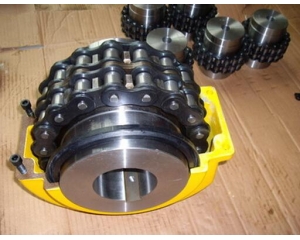 滾子鏈聯(lián)軸器,就是通過公用的滾子鏈把兩個半聯(lián)軸器,用鏈輪嚙合的方式連接而成的聯(lián)軸器,常用的滾子鏈聯(lián)軸器有:GL型滾子鏈聯(lián)軸器,KC型鏈輪(鏈條)聯(lián)軸器,尼龍鏈聯(lián)軸器,齒形鏈聯(lián)軸器等等。滾子鏈聯(lián)軸器的外觀的區(qū)別就是外面有無罩殼,有罩殼的就是為了為了美觀的同時,還能起到的保護工作人員安 全的作用,罩殼是在鏈條意外崩開的時候,能起到的緩沖作用,從而減少傷害。