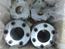 正確安裝膜片聯(lián)軸器螺 栓方法:把螺栓從法蘭盤小孔外側(cè)穿入,再穿入膜片孔中(注意膜片的方向,膜片是由許多單個薄片由鉚釘和鉚釘墊圈,鉚釘墊圈處應(yīng)與緩沖套相接觸,否則會影響 鉚釘組的使用壽命),再從另件法蘭盤大孔外側(cè)穿入套上緩沖套,彈性墊圈,擰上螺母緊固時要注意使螺栓不要轉(zhuǎn)動,安裝螺栓時 要注意螺栓方向,不要隨意安 裝螺栓方向,否則會造成膜片扭曲,長期運轉(zhuǎn)會使膜片和螺栓配合段表面、半軸節(jié)小孔處的損壞。因為螺栓與法蘭盤配合段表面是傳遞轉(zhuǎn)矩非常重要的配合段,表面 完好性直接影響使用性能。